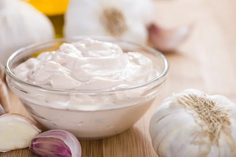 deze aioli is een volle romige saus, gemaakt met verse knoflook.