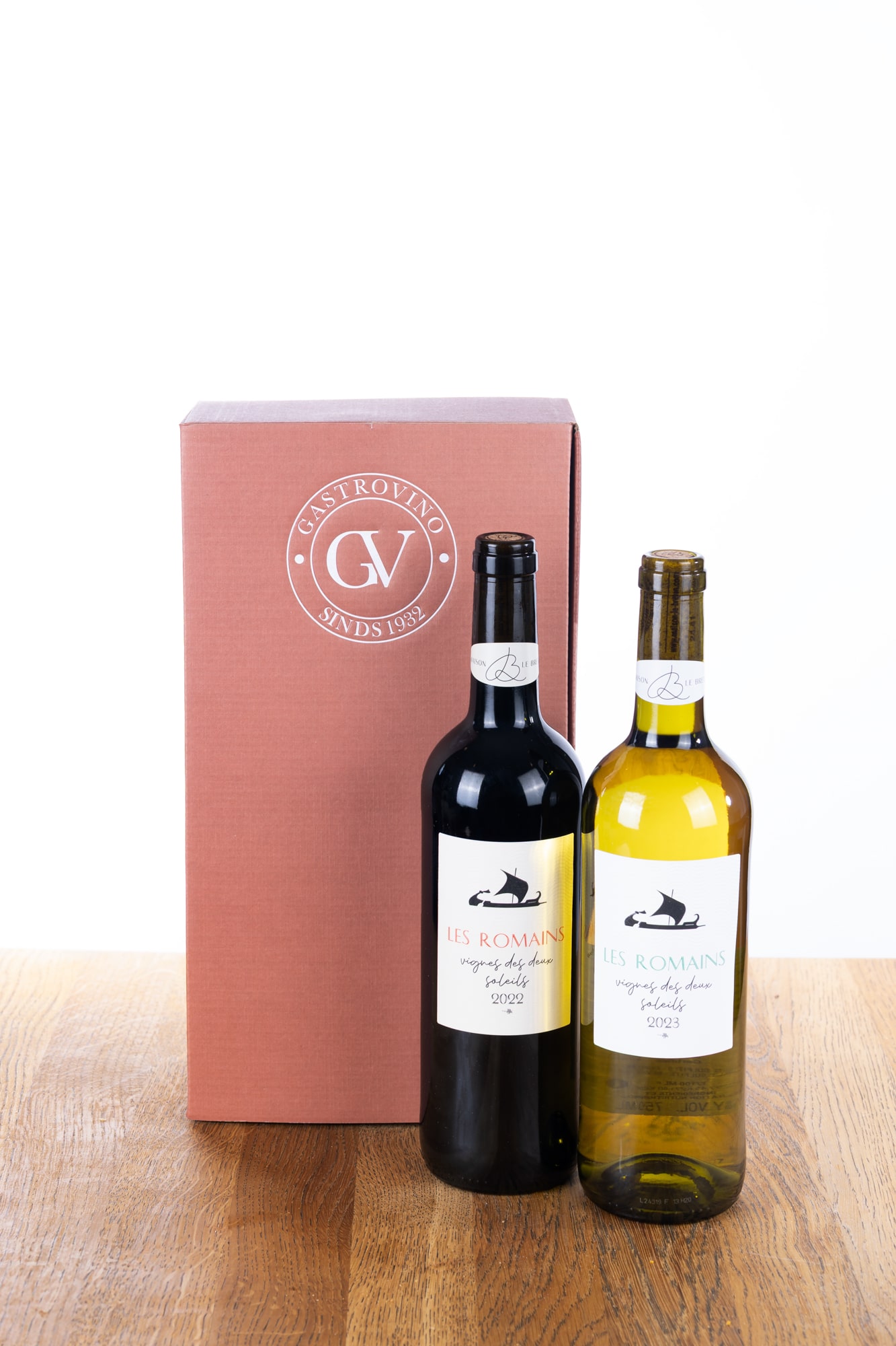 Het “Les Romains” pakket biedt twee fijne wijnen om van te genieten bij een diner of borrel. Met de frisse Blanc en de volle Rouge is dit een ideale combinatie voor iedere gelegenheid.