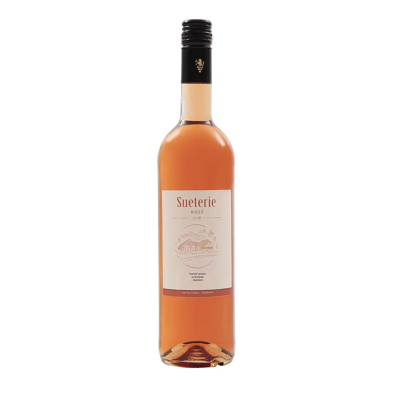 De Sueterie Rosé is een frisse fruitige zomerse wijn, heerlijk op het terras. De Rosé is een blend van de vroegrijpe rode druivensoorten Regent, Pinotin and Cabernet Cortis. De Rosé is een licht ruby van kleur, mooie fruitige aromas met zachte tannines. Bij vele gerechten te combineren.