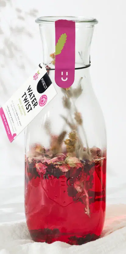 Dat is pas een twist! In plaats van een bloemetje geef je deze heerlijke Tafelwatervariant cadeau. Een pot vol blommen, wat een leuk idee. De combinatie van zachte rozenblaadjes en aromatische bergthee maakt dit Tafelwater niet alleen een plaatje om te zien, maar ook verrassend smaakvol. Subtiel, bloemig en perfect voor elk moment van de dag.